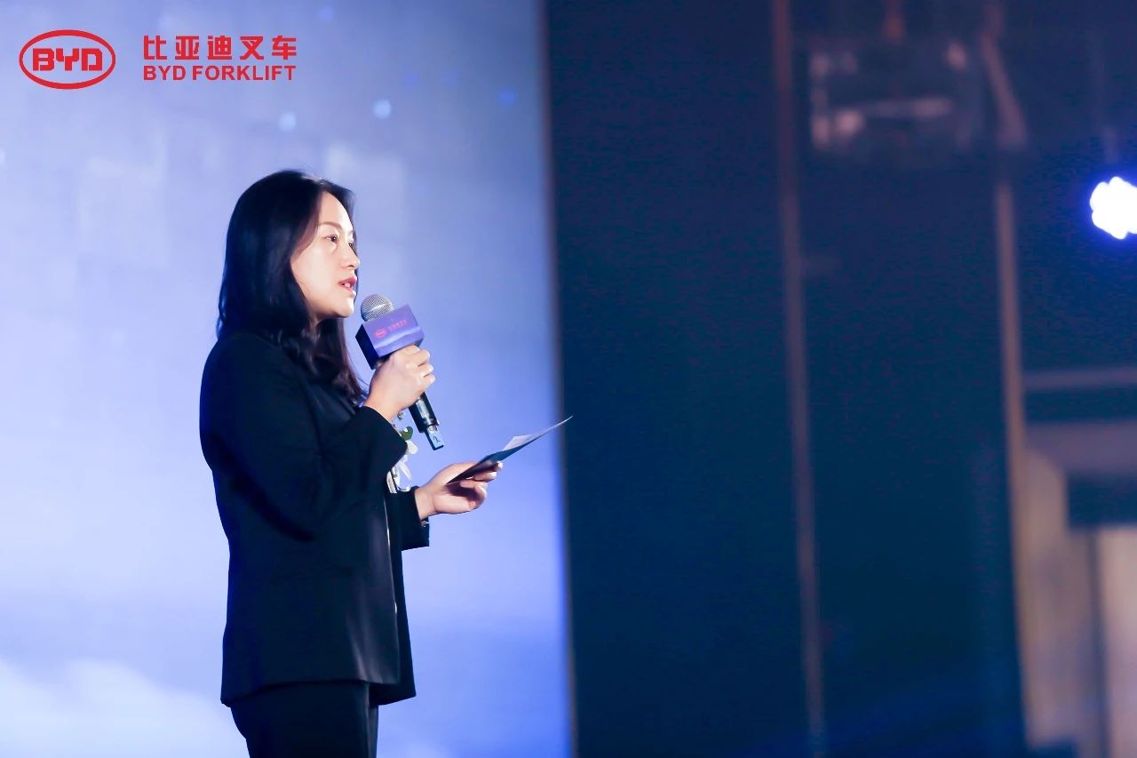 大會現場“高朋滿座,濟濟一堂”,比亞迪叉車國內銷售總監陳麗萍女士首先向在座來賓致歡迎辭。